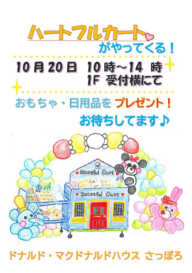 10月20日(月)10~14時、1階正面玄関にハートフルカートがやってきます!!