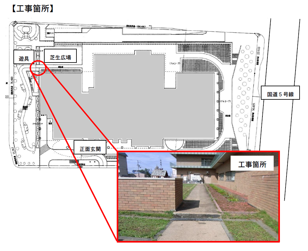 期間中も通行は出来ますが、工事に伴い段差箇所に舗装してあるアスファルトを剥がしておりますので、通行の際はご注意いただきますようお願いいたします。